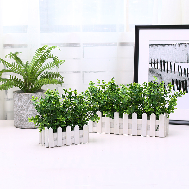 Mini Potted Artificial Plastic Small Eucalyptus Set Ornaments for Desk Decoration